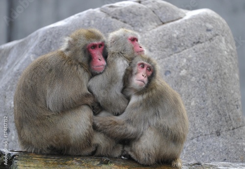 Naklejka premium Japanese Macaques or Snow Monkeys (Macaca fuscata) warming each other