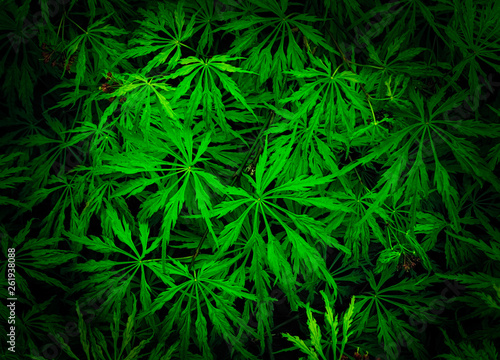 Obraz premium Japanese maple (acer palmatum) leaves close up in spring - green type