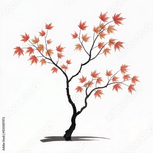 © Giggles, Fototapeta premium Japanese Maple Branch in Autumn Colors on White Background