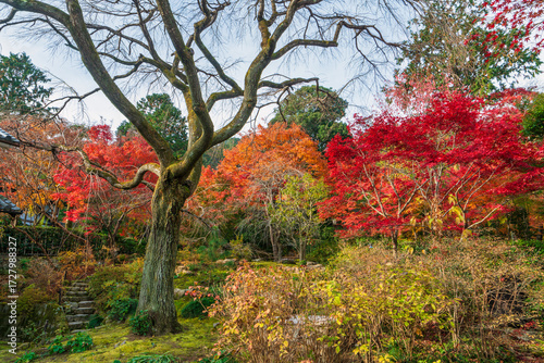 Naklejka premium Japanese Maple tree in autumn colors at Tenryū-ji Shrine in Kyoto. Japan