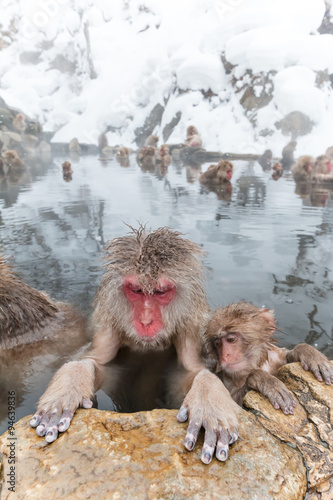 Obraz premium 温泉でいやされるおさるさん Japanese monkey outdoor bath