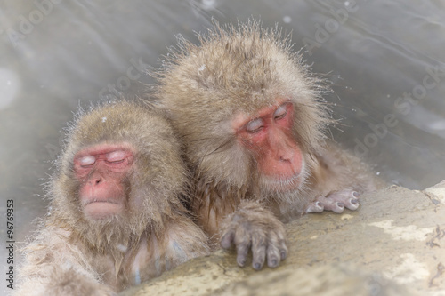 Fototapeta premium 温泉のおさるさん Japanese monkeys healed in a hot spring
