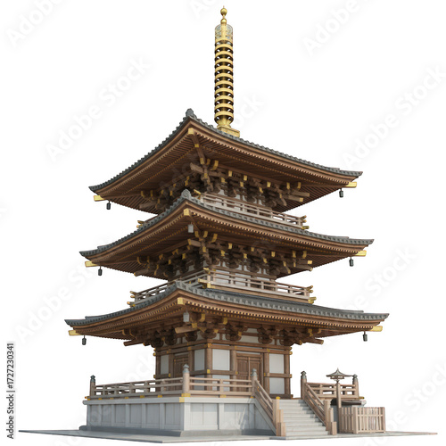© rehan, Naklejka premium Japanese pagoda architecture with gold spire on transparent background