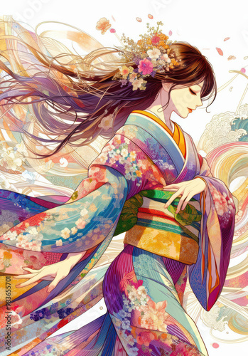 © dalb, Fototapeta premium 日本画(Japanese painting)/着物の女性 anime イラスト