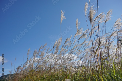 Fototapeta premium Japanese Pampas Grass(Susuki grass) blown by the wind