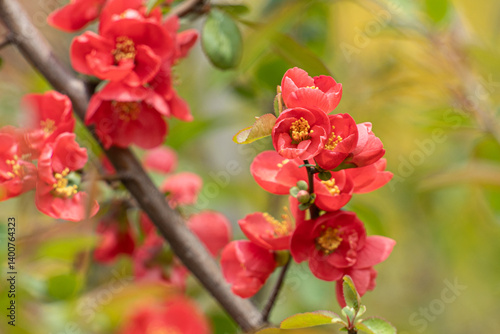© JJ, Obraz premium 명자나무꽃, 명자나무, Japanese quince, flowering quince, ping flower