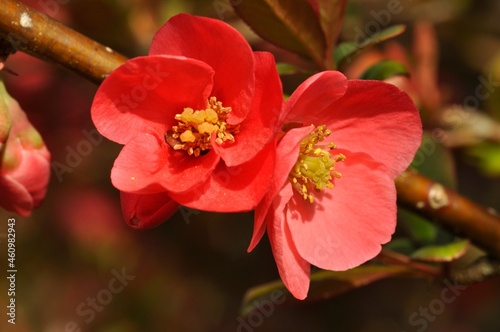 Obraz premium Japanese quince in bloom in a garden