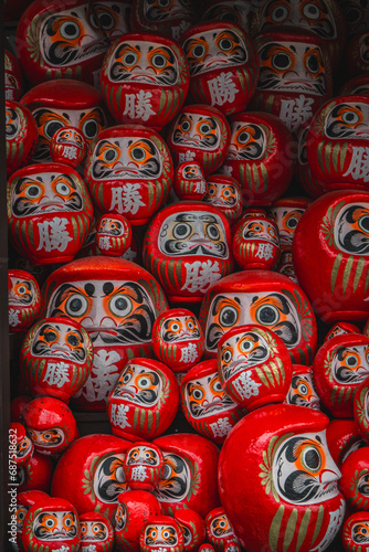 © Pongsapak, Fototapeta premium Japanese red daruma traditional doll background wallpaper