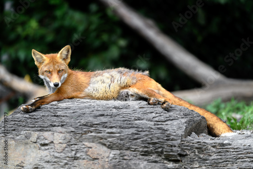 © Godimus Michel, Obraz premium Japanese red fox sleeping on a rock
