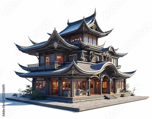 Fototapeta premium Japanese royal castle architecture model with a mix of futuristic styles....