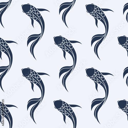 © Alina, Naklejka premium Japanese seamless pattern with koi carps. Chinese vector background with koi fish.