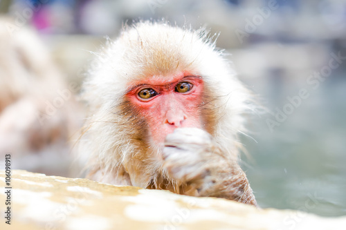 © Hajime, Obraz premium Japanese snow monkey bathing in hot spring