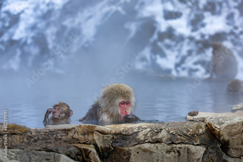 © rbk365, Naklejka premium Japanese Snow monkey family,Jigokudani Monkey Park, Nagano, Japan