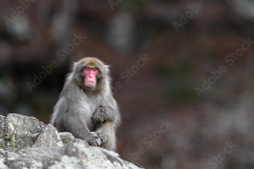 © Godimus Michel, Fototapeta premium Japanese snow monkey portrait during fall