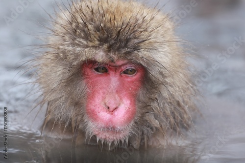 Fototapeta premium Japanese Snow Monkey Relaxing in Hot Spring, Joshinetsu, Nagano, Japan
