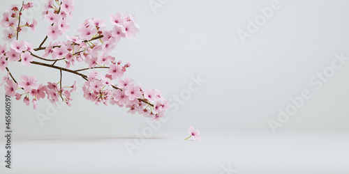 © allme3d, Obraz premium japanese style minimal cherry blossom white background for product presentation. 3d rendering illustration.