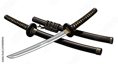 © bagas, Fototapeta premium Japanese swords isolated on white katana and wakizashi weapons illustration