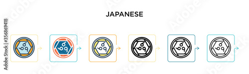 © Premium Art, Naklejka premium Japanese symbol family crest kamon vector icon in 6 different modern styles. Black, two colored japanese symbol family crest kamon icons designed in filled, outline, line and stroke style. Vector