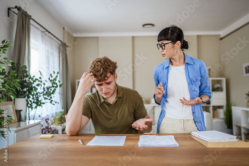 © Miljan Živković, Obraz premium japanese teacher explain lesson to stressed young man student at home