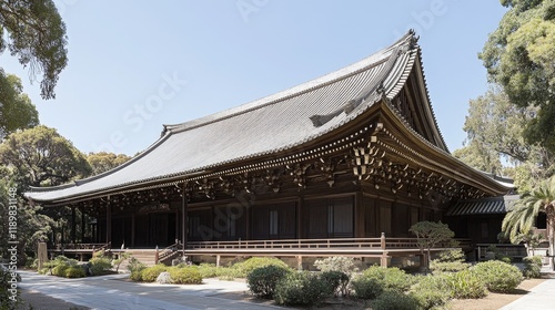Fototapeta premium Japanese temple serene garden sunny day peaceful architecture