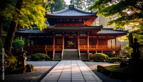 © Muhammad, Fototapeta premium Japanese Temple with Sunrise, and Serenity.