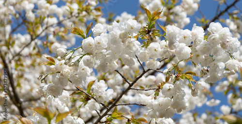 Fototapeta premium Japanese tree flower blooming nature background in spring