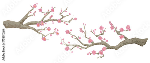 Fototapeta premium 梅の花と枝木セットJapanese Watercolor Illustration