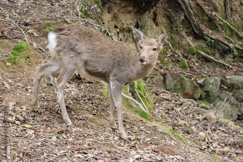 © PATARA, Fototapeta premium Japanese wild friendly cute deer at Nara national public park.