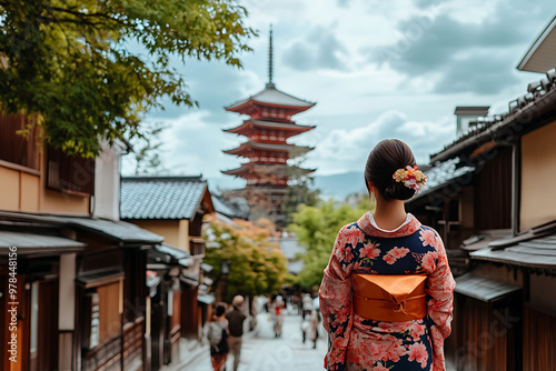 © Marina Shvedak, Fototapeta premium Japanese woman in traditional kimono visit Yasaka Pagoda at Hokanji temple in Kyoto