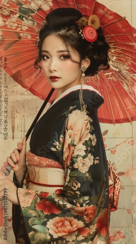 © King558, Naklejka premium Japanese woman with a traditional dress, looking elegant