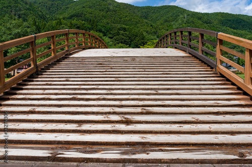 © Olga K, Fototapeta premium Japanese wooden footbridge in Narai historic village in Japan