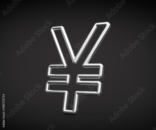 Fototapeta premium Japanese Yen Currency Symbol Made Of Silver Metal Gleam With Smooth Curves 3D...