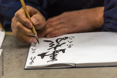 © Savvapanf Photo ©, Obraz premium Japończyk piszący imię i nazwisko turysty w Japonii
