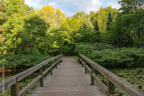 © uliabond, Obraz premium Japoński krajobraz, rzeka, most. Lato