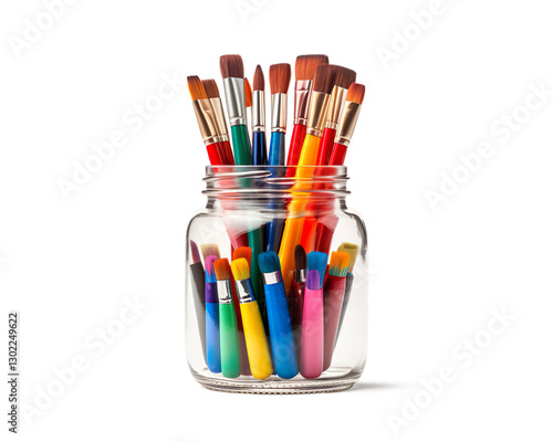 Fototapeta premium Jar of colorful paintbrushes on a transparent background