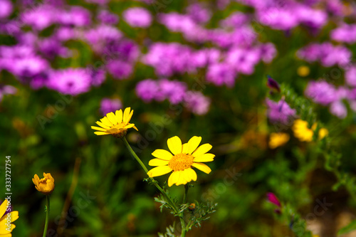 © Adrian, Obraz premium Jardín lleno de flores en primavera a pleno sol