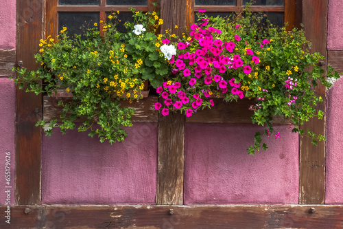 Fototapeta premium Jardinière fleurie sur fenêtre alsacienne