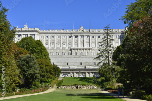 © @trabalho.paraisso, Naklejka premium Jardins do Campo del Moro com o Palácio Real de Madrid na Espanha