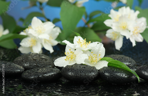 © CUKMEN, Fototapeta premium Jaśmin z kamieniami do spa