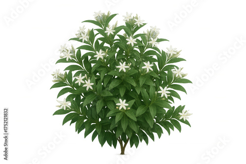 © Michael, Fototapeta premium Jasmine bush with delicate white flowers and lush green foliage, perfect for natural garden designs, transparent background