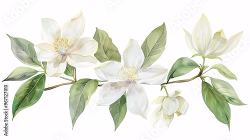 Obraz premium 127. Jasmine flower watercolor illustration for pattern, invitation and...