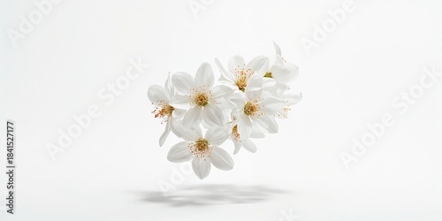 © The 2R Artificiality, Obraz premium Jasmine flowers floating against a white backdrop, ideal for botanical layout backgrounds