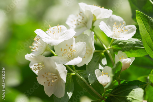 Fototapeta premium Jasmine flowers in a garden. Spring background