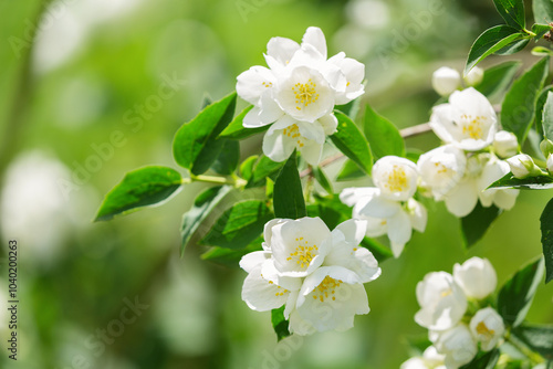 Fototapeta premium Jasmine flowers on a bush in a garden