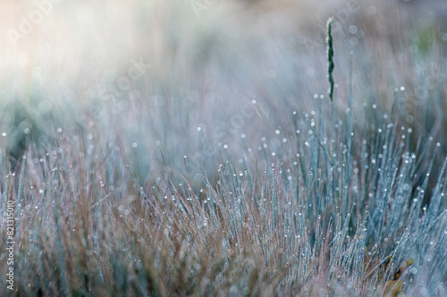 © Henryk Niestrój, Obraz premium jasna szara i zielona trawa z rosą jako tło