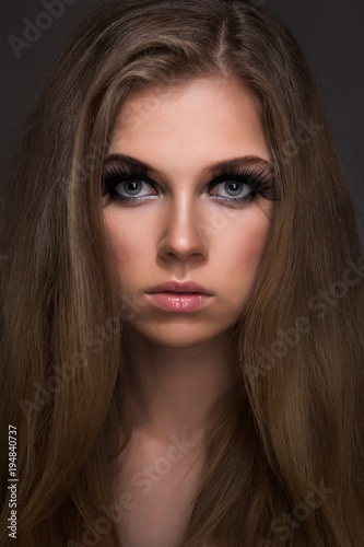 © Evgenia Tiplyashina, Fototapeta premium Jasne kosmetyki na młodych kobietach i czarnych ustach