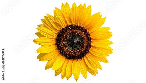 Fototapeta premium Jasnożółty słonecznik z ciemnobrązowym środkiem na czystym białym tle