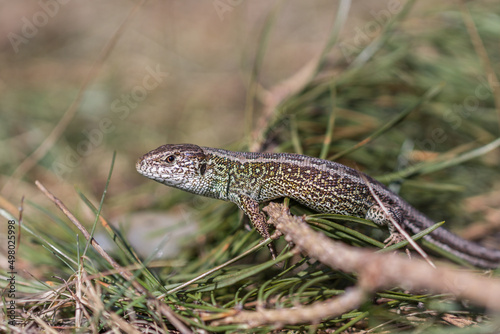 Naklejka premium Jaszczurka zwinka wiosną na łące