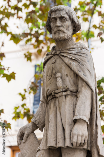 Fototapeta premium Jaume Ferrer, Autor: Joan Grauches ,1915 ,Piedra viva.,Plaça Drassana, Palma, Mallorca, balearic islands, spain, europe