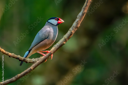 © Riadi, Fototapeta premium Java finch, Java sparrow, padda oryzivora, over a branch